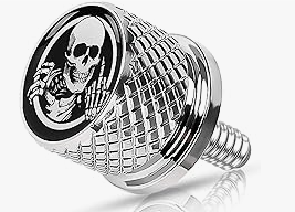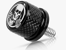 - Product Features:This seat screw overall glossy, small and exquisite, can be complemented with your mudguard finishes, the top of the skull pattern for your car to add fashionable cool unique charm, make your car stand out, is your essential motorcycle decorative accessories